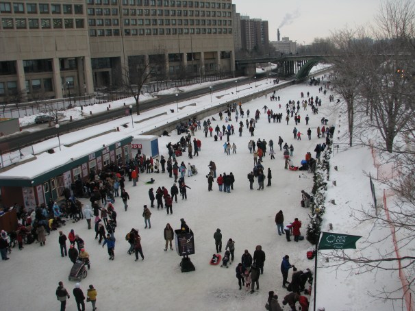 I’ve been looking at pictures of a trip we took several years ago to Ottawa to their big winter festival, Winterlude. If you’ve been to Ottawa, you no doubt remember the Rideau Canal which flows through the city and passes just below the Parliament Buildings. A lot of the Winterlude activities center around the canal, which is a natural winter sports magnet as it freezes over and becomes the world’s largest skating rink. Some of the locals skate to work, and even if you’re not a skater, it’s fascinating (for somebody from the American South, at least) to watch others who take maneuvering on ice for granted. I had never given much thought, for instance, to the mechanics of toddler transportation in a world where strollers are of little use. What you do is bundle up the kids so only their little eyes are showing, strap them onto a sturdy little sled, and tow it behind you as you glide across the ice or trudge through the snow. I’m proud to say that PJ and I skated on the Rideau Canal, having taken some lessons in preparation for our trip.