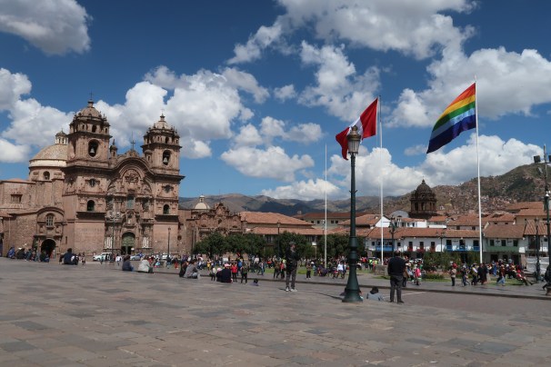 We went back to Cusco after Machu Picchu and spent a couple of days there.  This was one place I really wish we’d had more time.  As the capital of the Incan Empire, there’s a lot to see there, and it’s a busy and interesting city to walk around in any case.  We especially enjoyed the Convent of Santo Domingo, which was built by the Spanish on the site of the Incan Temple of the Sun, the holiest place in the empire.  You could only enter the temple if you were Incan (that is, part of the royal family), were barefoot and had fasted for three days.  The walls and floors were covered with gold during Incan times.  The official name was Coricancha, which means “golden enclosure” in the Quechua language.