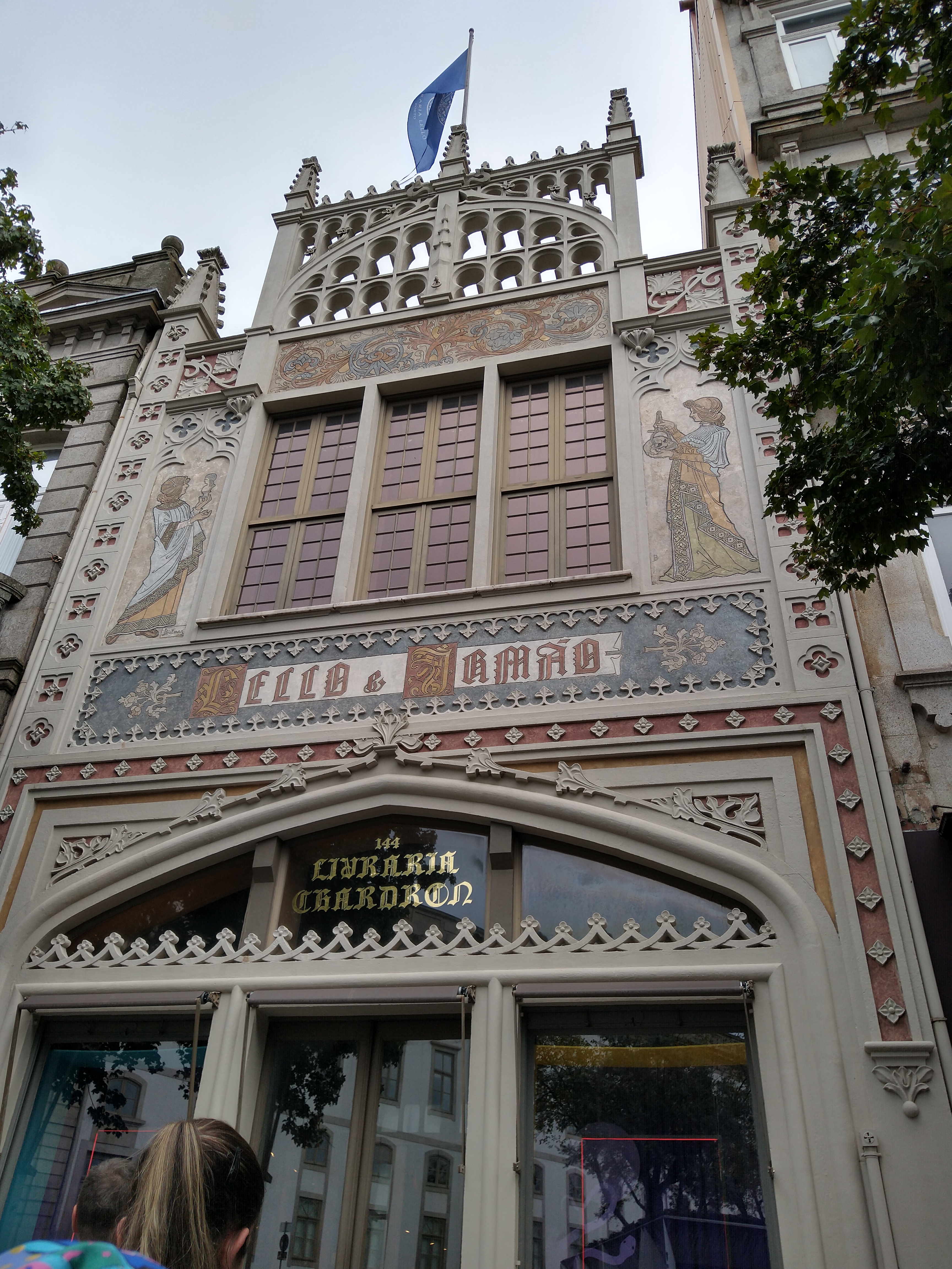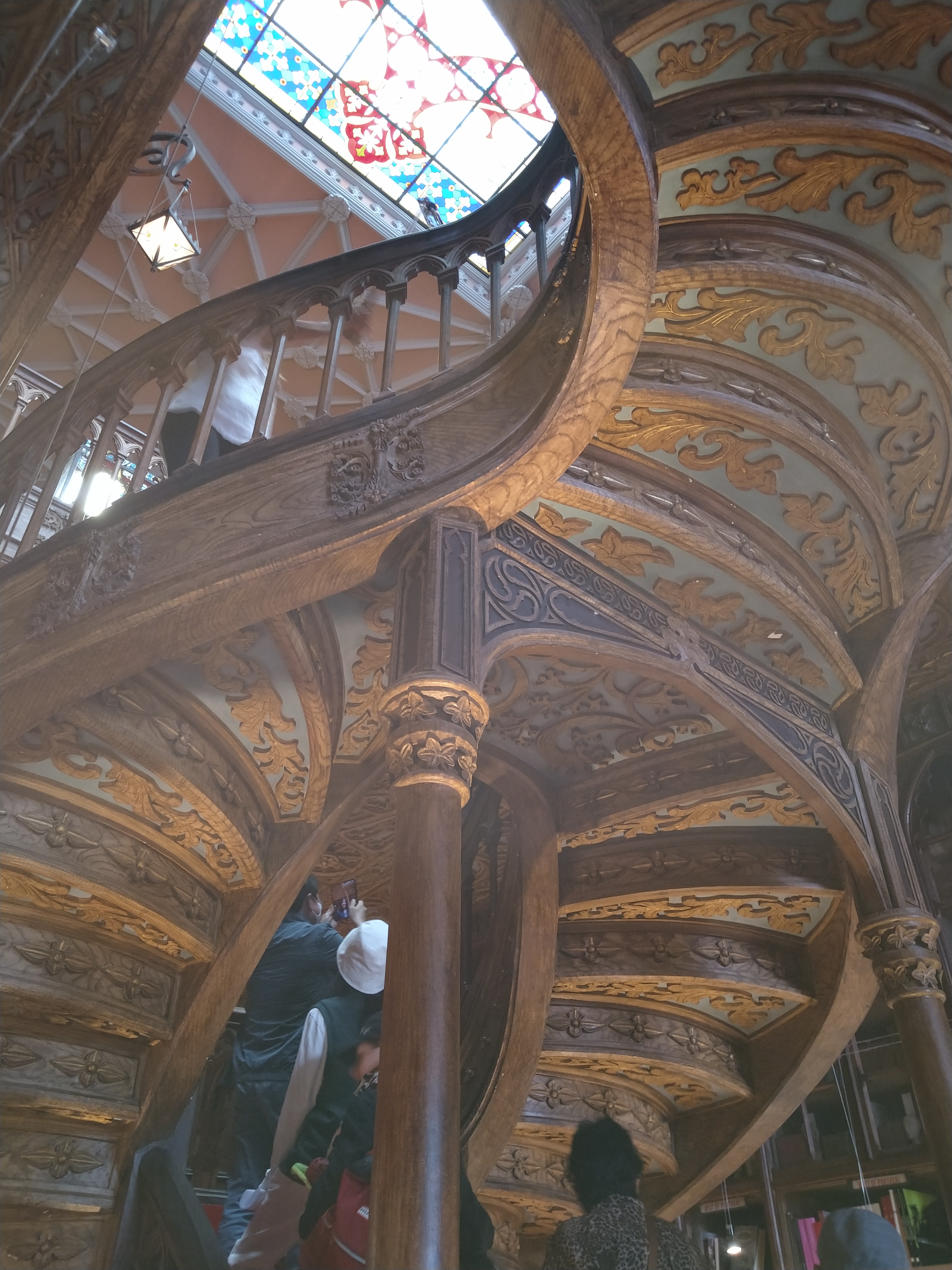 The Portuguese love books, and bookstores are common throughout the city. The most famous is called Livraria Lello. J. K. Rowling lived in Porto for two years teaching English as a second language, and she started writing the first Harry Potter book there. Livraria Lello has been described as one of the most beautiful bookstores in the world, and a rumor started that Rowling used it as her inspiration for Flourish and Blotts in Diagon Alley. I did read somewhere that she has stated she never set foot in the place, but that doesn’t prevent fans from showing up in droves. It did, in fact, almost drive the store out of business, because most people just wanted to take pictures and never bought anything, and people who actually wanted to shop for books found it easier to shop elsewhere. Now the store charges a 6-euro admission, which is refundable if you buy a book. We weren’t above going ourselves and it is truly a lovely place, but so crowded that it was hard to appreciate the architecture. I wandered around, looking for a book to buy, and I wanted one in Portuguese. It needed to be something either really easy or one that I was really familiar with. James Joyce? I can’t understand James Joyce in English. PJ bought a simple children’s book, and I chose a copy of Harry Potter and the Chamber of Secrets. They were sold out of the first one in Portuguese. Not surprisingly, the Harry Potter series was available in several languages.